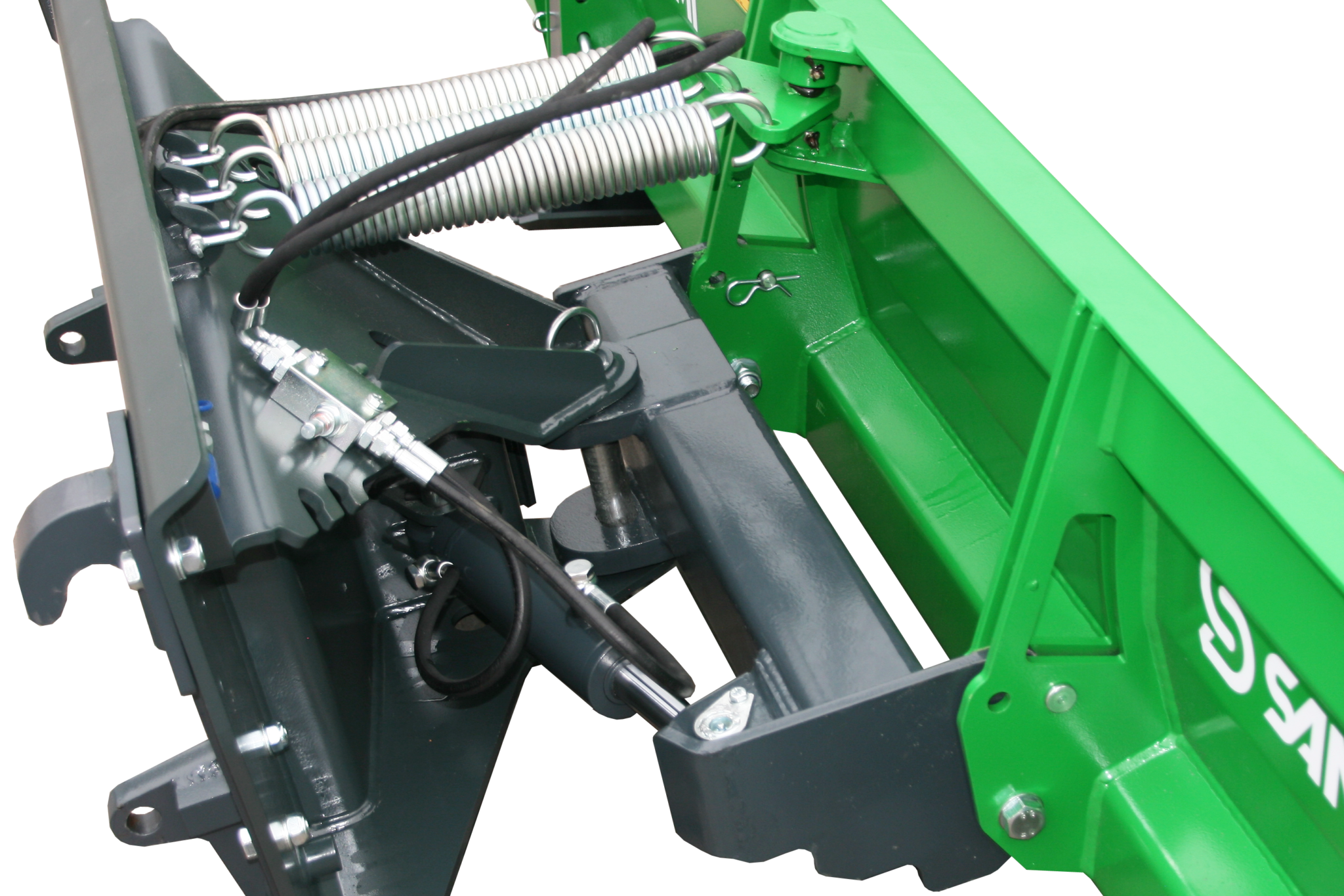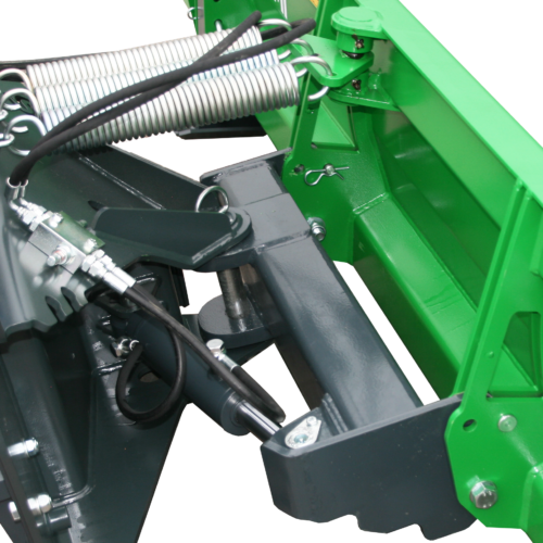 Hidrauliskā sistēma ļauj ērti regulēt lāpstas leņķi tieši no kabīnes, savukārt peldošā konstrukcija nodrošina vienmērīgu kontaktu ar ceļa virsmu.